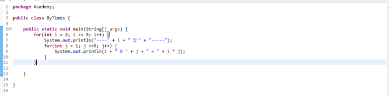반복문의 중첩(for문 안의 for문) - 99단 예제
