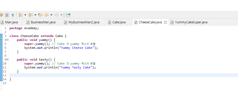 class CheeseCake extends Cake{ public void milky() {...} }