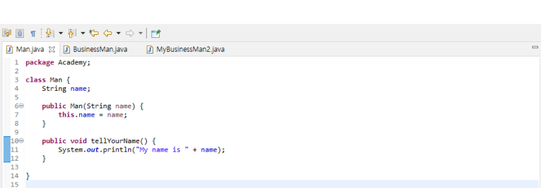 - Man 클래스가 상위클래스이고 생성자를 통한 초기화를 하고 있다.