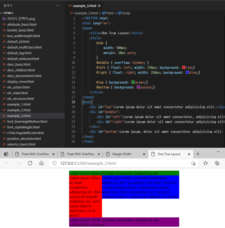 ☞ menu float : right, section float : left / HTML에서 section, menu 순 작성