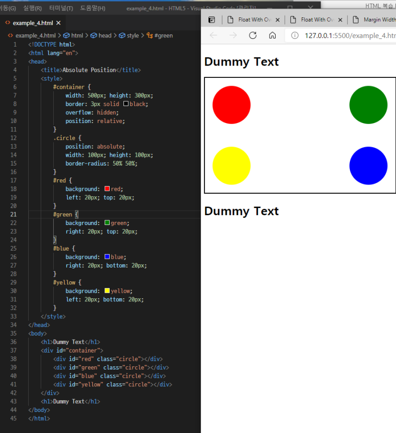 .6) float 태그의 left와 right 를 활용해 적당한 위치에 놓아둔다.