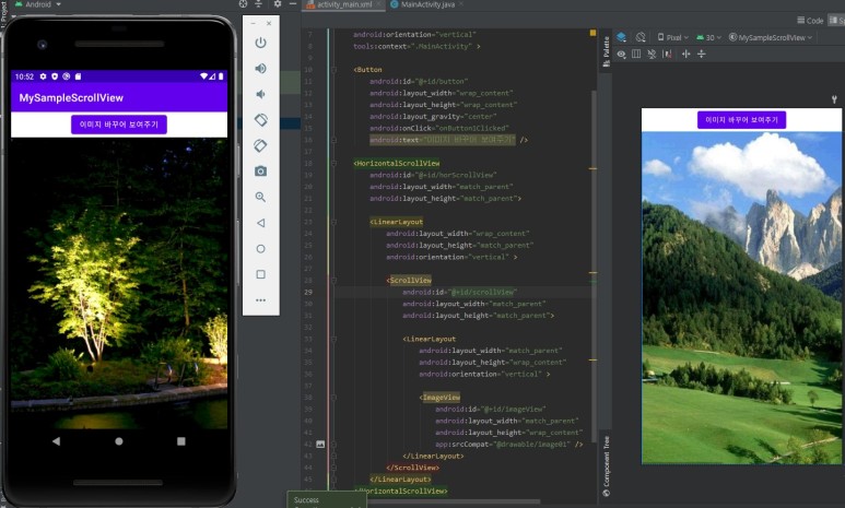 .- 수평 방향의 스크롤을 사용하고 싶다면 HorizontalScrollView를 사용하면 된다.