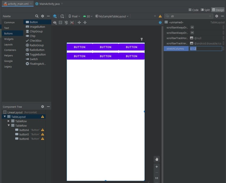 .......세개의 버튼이 가로 방향을 꽉 채우게 된다. “0”이라는 값은 칼럼의 인덱스를 가리키며