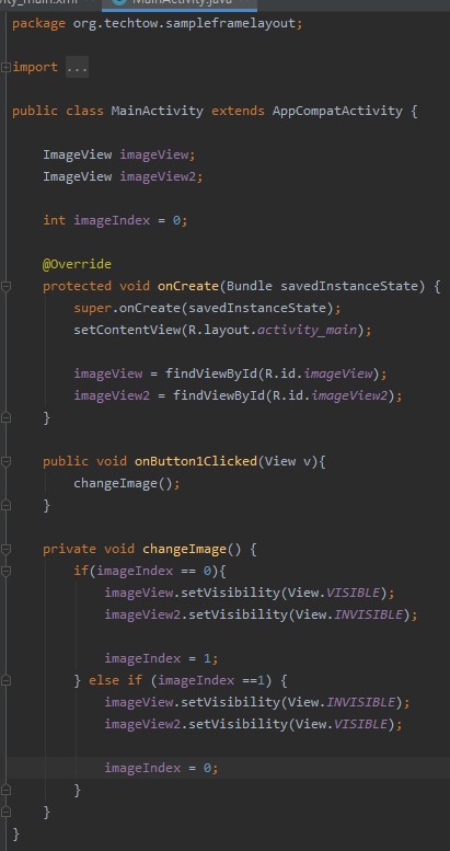 ☞ 화면에서는 이미지가 바뀌는 것처럼 보이지만, 실제로는 두 개의 이미지뷰가 중첩되어