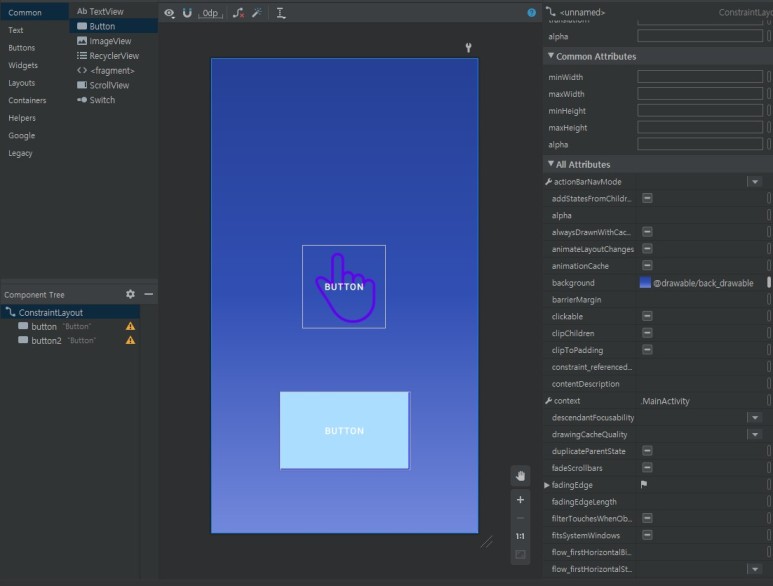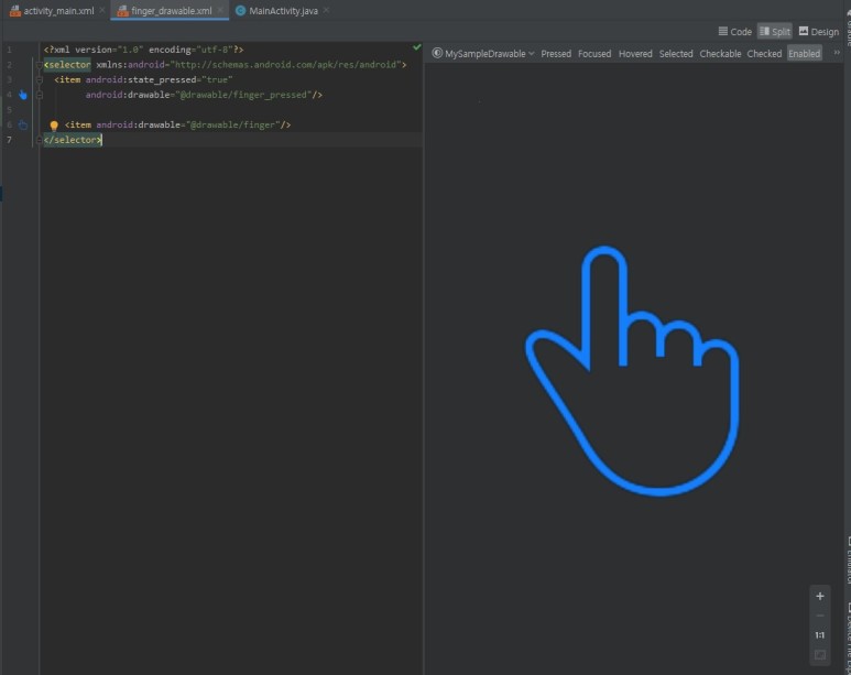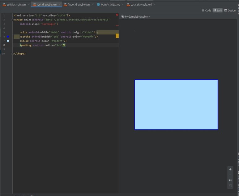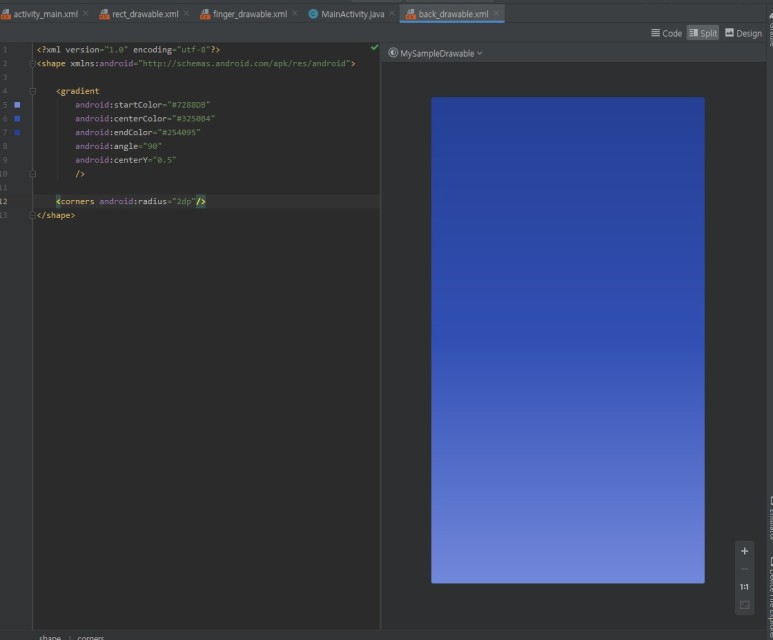 2. 드로어블 XML 파일은 이미지를 버튼 배경으로 설정한 것처럼 배경으로 할 수 있다.