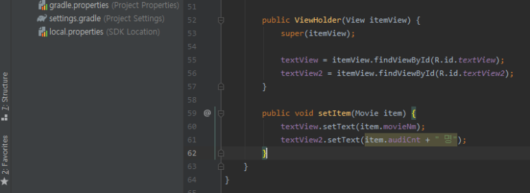 ☞ Movie 객체를 어댑터에서 관리하도록 만든 것입니다.