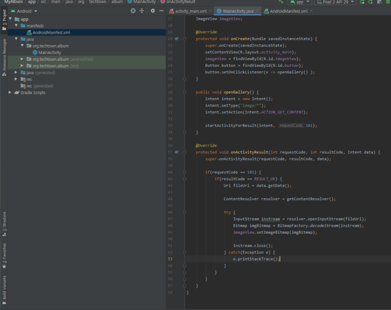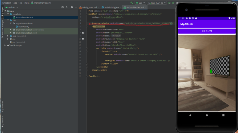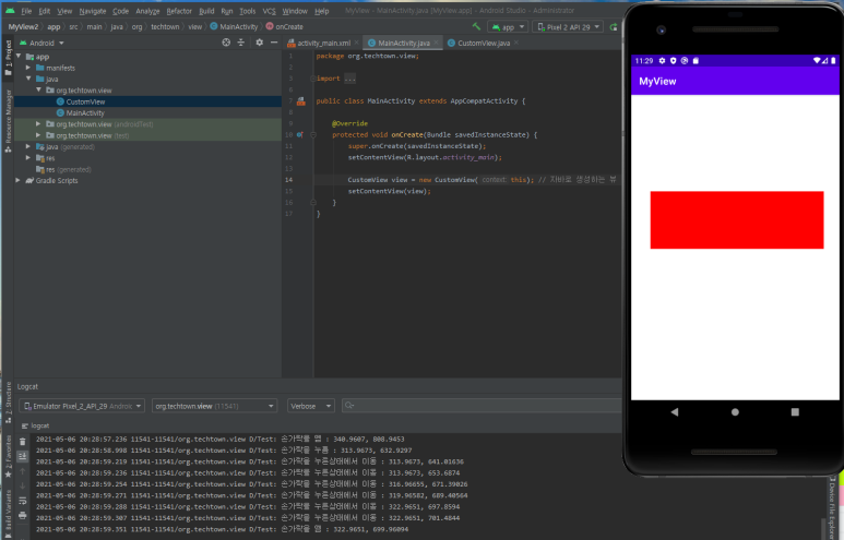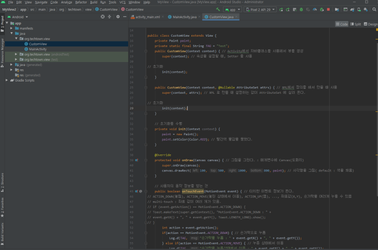 새로 만든 뷰를 메인 액티비티에 추가합니다. |