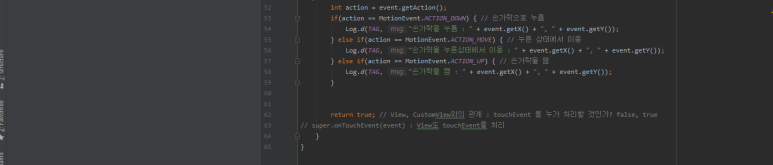 onTouchEvent() 메서드 내에 터치 이벤트를 처리하는 코드를 넣습니다. |