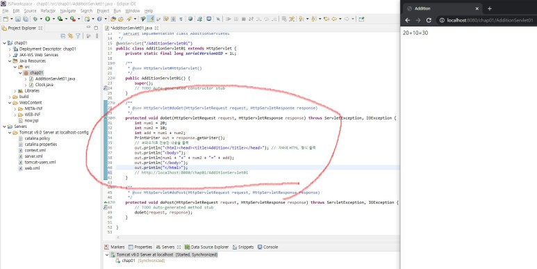 4. 브라우저를 통해 자바클래스가 실행되도록 하기 위해서는 javax.servelt.http 패키지에서 제공하는 HttpServlet 클래스를 상속받아 구현해야 함.