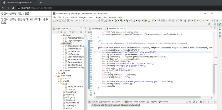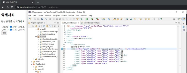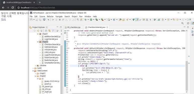 checkbox와 getParameterValues, 목록상자, JSP 기본 다루기, 컨택스트 패스, 두 수의 합 JSP, JSP 처리과정, JSP가 서블릿에 비해 처리속도가 느리지 않은 이유, JSP 페이지의 구성요소, jsp 기본태그, 선언문, 변수의 위치, 표현시그