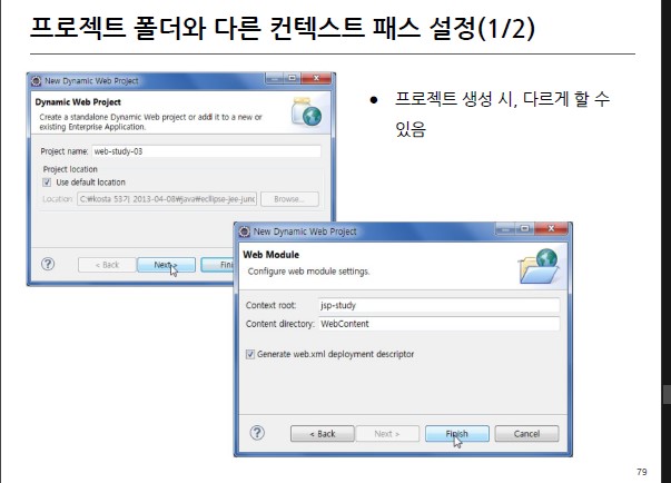 2. 컨텍스트 패스 : 응용 애플리케이션에 접근하기 위한 경로, 프로젝트 폴더 명과 다를 수 있으며 ,변경 가능