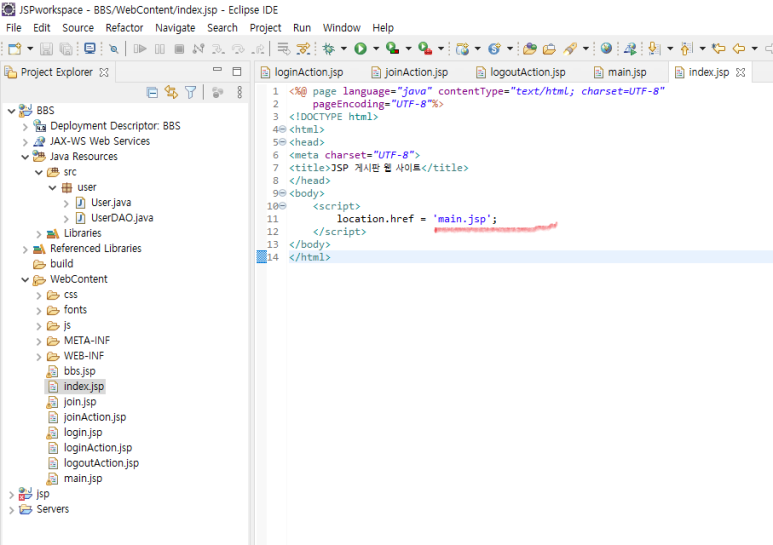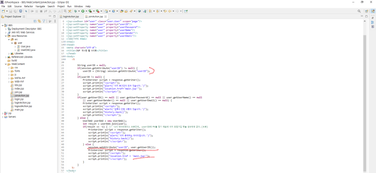 joinAction.jsp에 세션값을 가져오고 main.jsp로 이동하는 부분을 추가한다.
