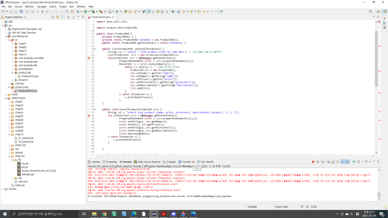 5. 상품리스트를 보여주는 ProductListServlet(DB에서 객체를 가져오는) 과 productList.jsp를 만든다.