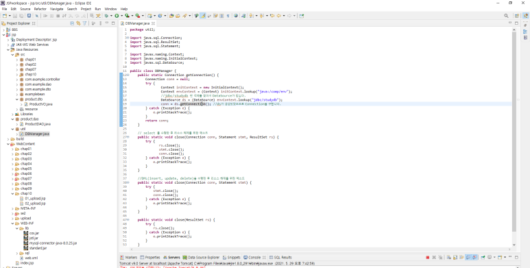 4. DBCP 를 관리하는 DBManager.java 클래스를 만든다.