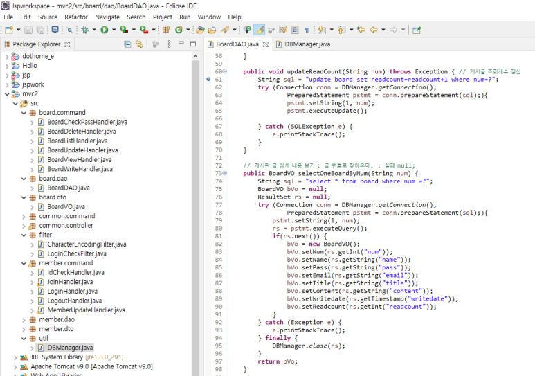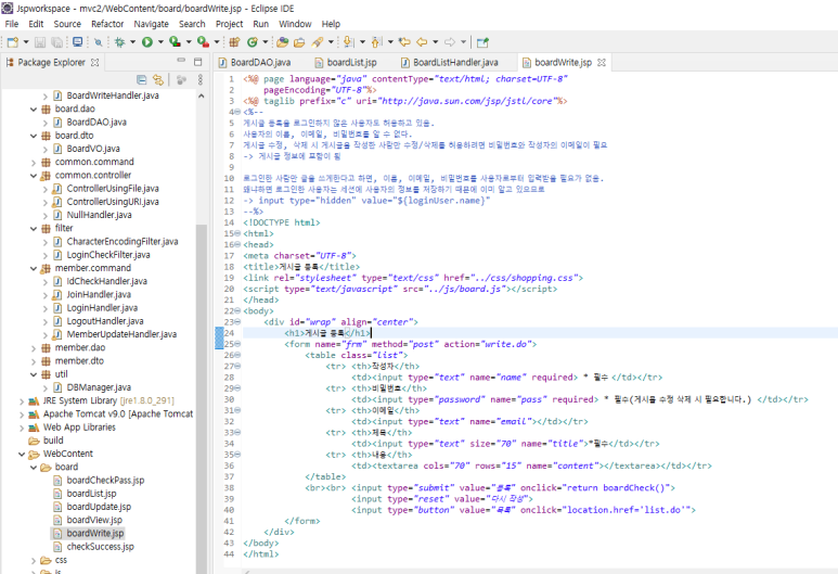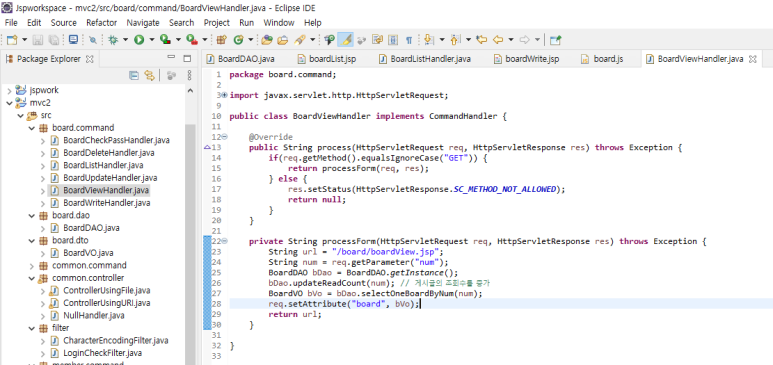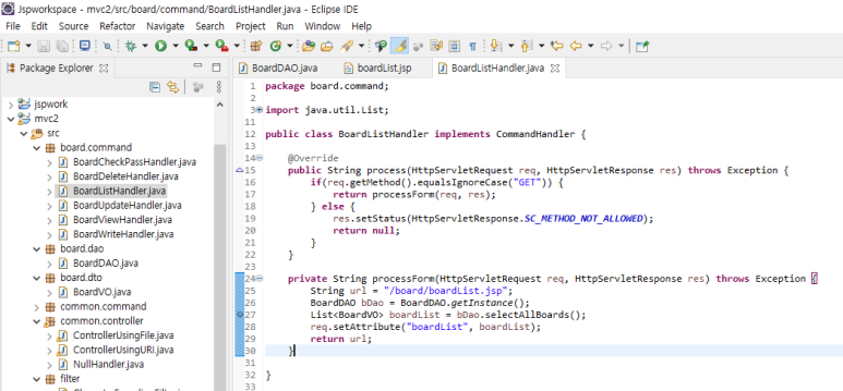 7. BoardListHandler.java (MVC 중 C)를 작성합니다.