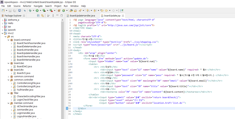 17. BoardUpdateHandler.java를 생성합니다. (게시판 수정)