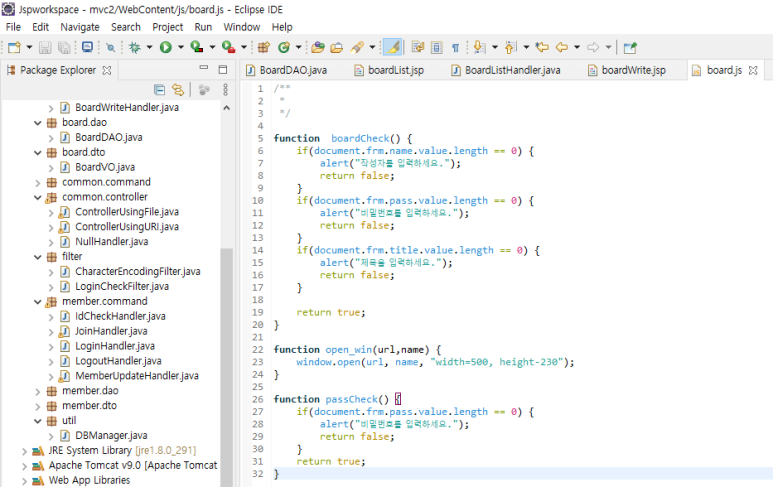 11. js/board.js 를 작성하여 유효성 검사에 대한 사항들을 작성합니다.