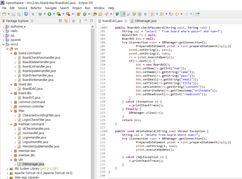 6. board.dao.BoardDAO.java 클래스를 생성합니다. ( Database Access Object )