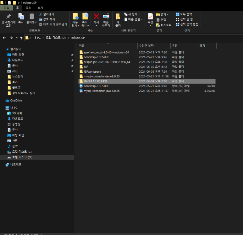 3) 압축 푼 파일에서 sts-3.9.15.RELEASE 파일을 톰캣이 설치되었던 파일위치로 옮깁니다.