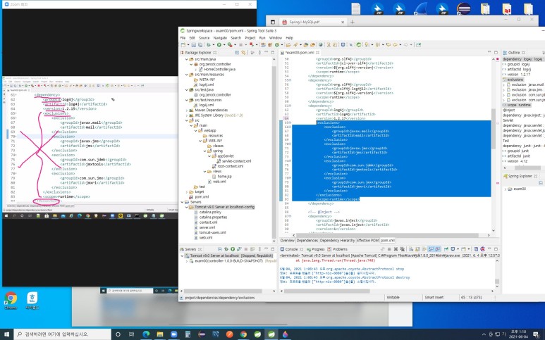 6. 프로젝트에서 pom.xml 에서 해당 내용들을 삭제,입력,수정 합니다.