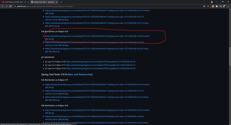 왜 꼭 4.16인지는 모르겠습니다. 교안에는 4.16이 JDK 8을 지원하는 환경이고 그보다 높은 버젼을 사용하려면 JDK8(JDK11)여야 한다고 합니다. 톰캣은 JSP 할 때 다운받았어므로 생략합니다.(9.0 을 사용합니다.)