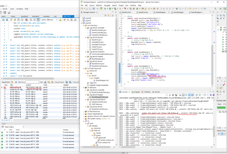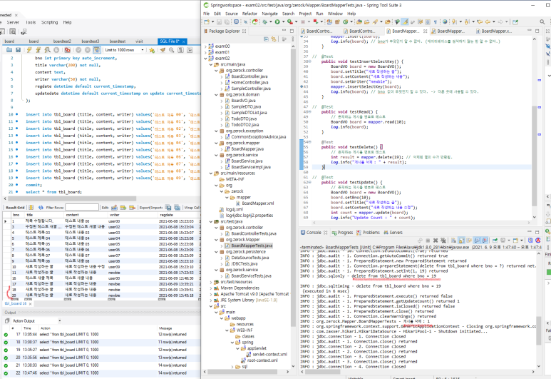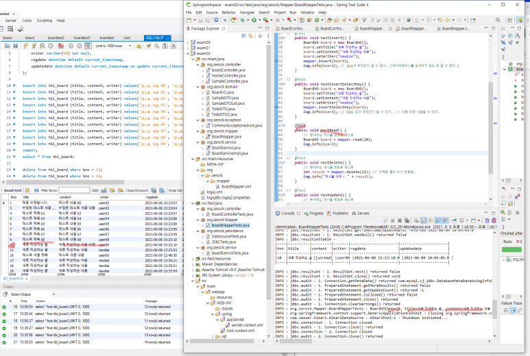 3. BoardMapperTests.java 에 각 메소드에 대하여 테스트를 합니다.
