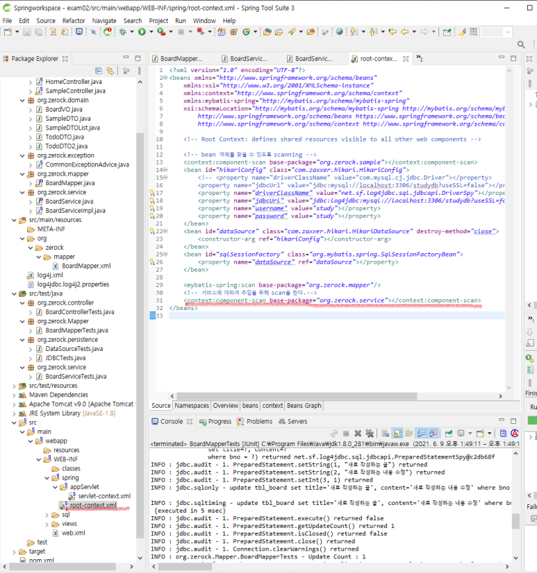 2. root-context.xml 에 해당 패키지 경로를 등록합니다.