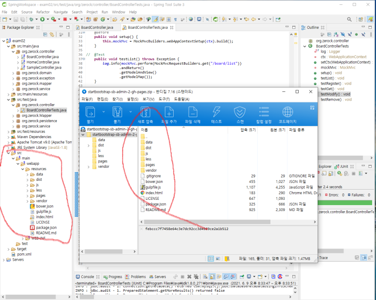 3)src/test/java/org.zerock.controller.BoardControllerTests.java 를 생성하여 테스트를 합니다.