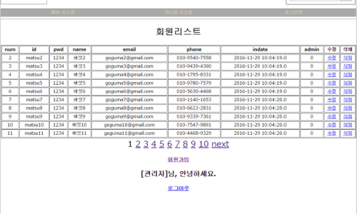 list.jsp 에 버튼과 javascript 를 추가하였을 때 생기는 버튼입니다.