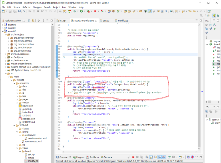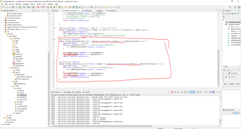 2) BoardController.java 의 modfiy(), remove() 를 수정합니다.