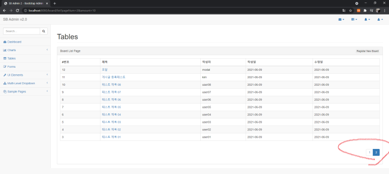 1) 브라우저 주소창에서 페이지 번호를 전달해서 결과를 확인하는 단계