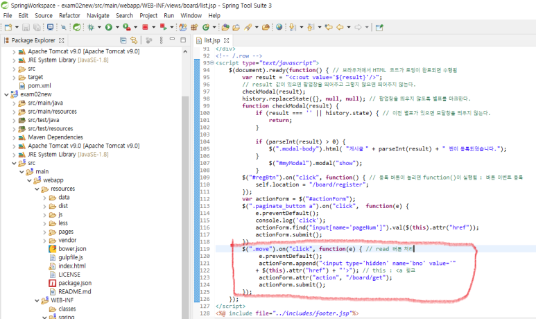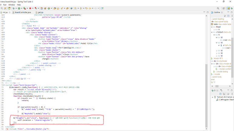 list.jsp의 해당 부분 추가 밑에 스크립트는 아직 추가하지 않은 부분입니다.