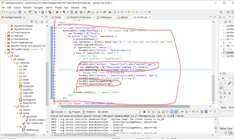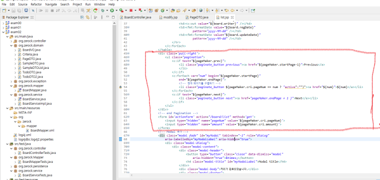 (1) 저도 이 코드는 잘 이해 안가지만 boardlist로부터 get method로 가져온 pageNum과 amount를