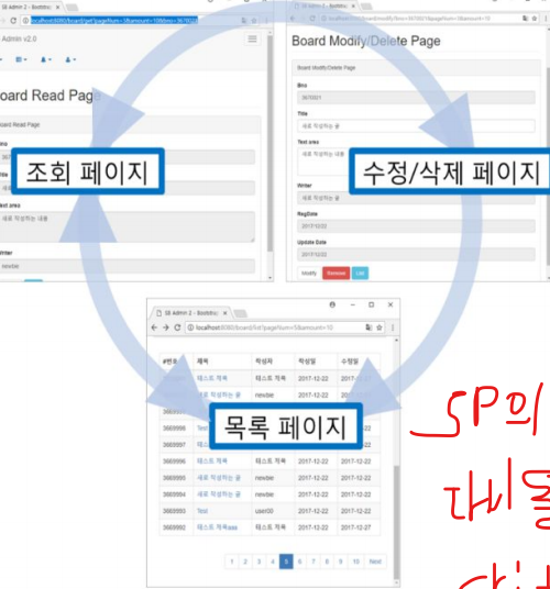 예를 들어, 5p에 게시글을 조회하여, 수정하였거나, 삭제하였을 때 다시 5p로 되돌아 올수 있어야 합니다. criteria(pageNum, amount)가 유지되어야 한다는 의미입니다.