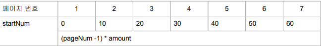 2) amount : 한 페이지에 보여줄 게시글의 수 (보통 10개로 합니다.)