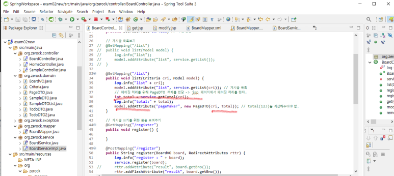 BoardServiceImpl.java, BoardController.java 의 list() 메소드를 수정합니다.