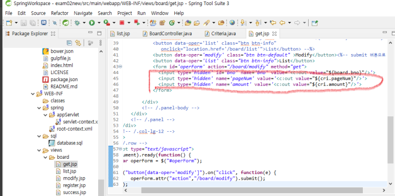 get.jsp / form 에 hidden 으로 cri.pageNum과 cri.amount를 넘깁니다.