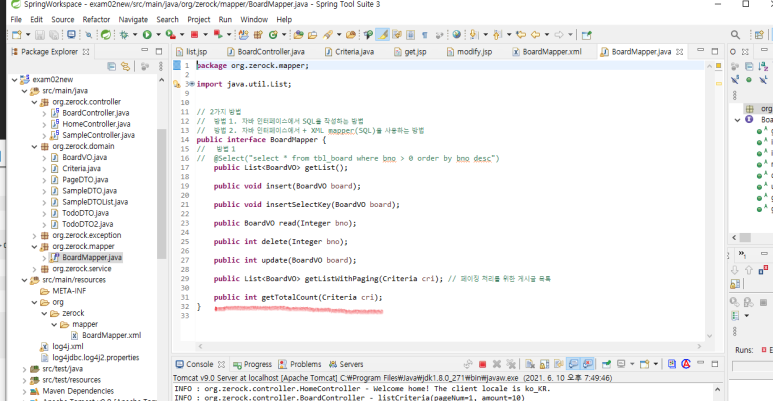 2. 테스를 하기 위해 BoardMapper.java 클래스에 메소드 추가, BoardMapper.xml 에 쿼리등록,