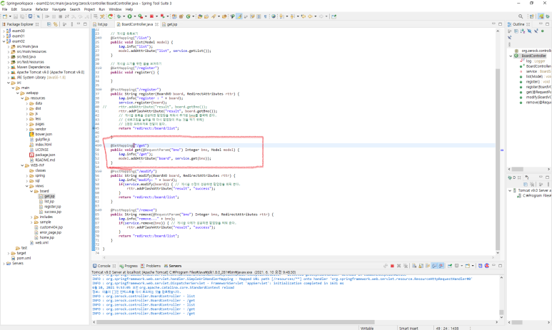 4. BoardController.java 에서 get 메서드를 수정합니다.