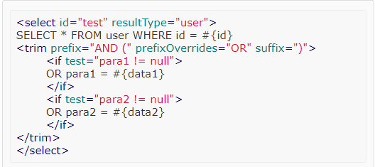 (1) <trim prefix = "AND (" prefixOverrides="OR" suffix=")">