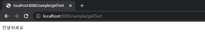 1) 주소창에 localhost:8080/sample/getText 를 작성하여 동작을 확인합니다.