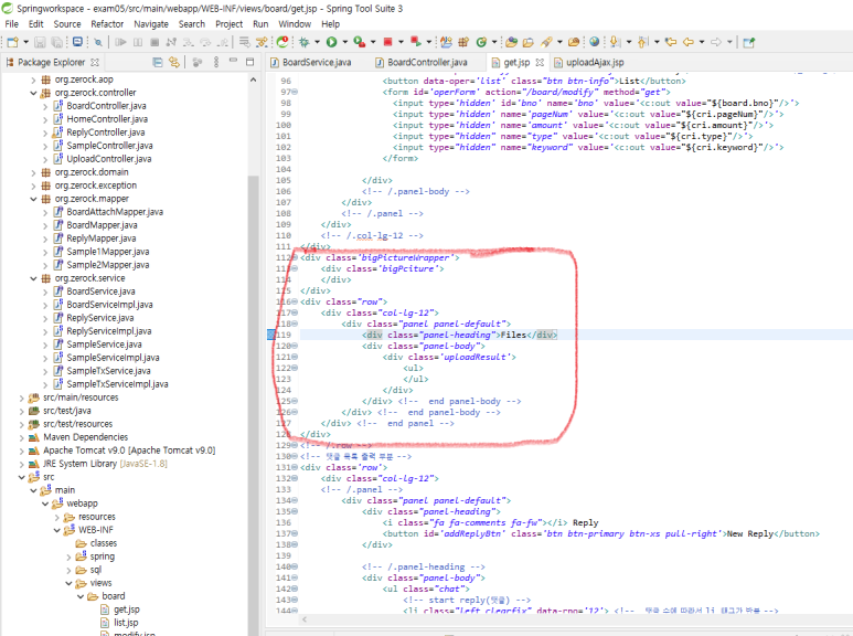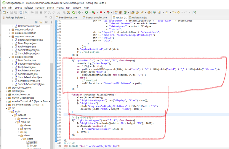 2. get.jsp 에서 javascript 에 첨부파일 정보를 가져오는 코드를 추가합니다.