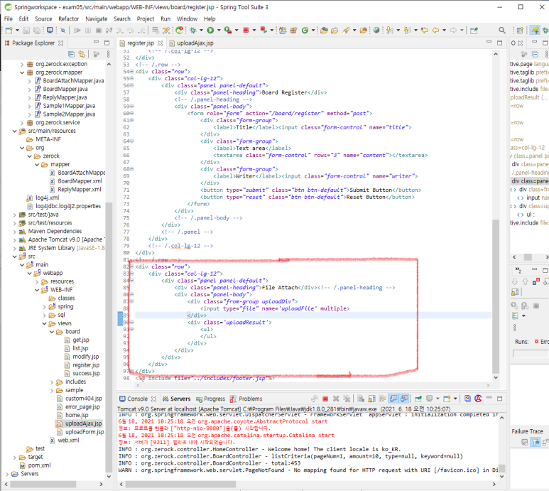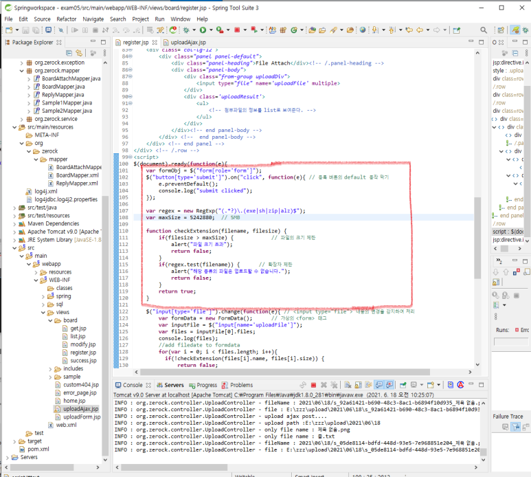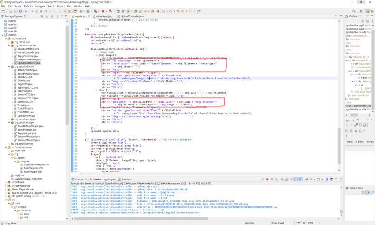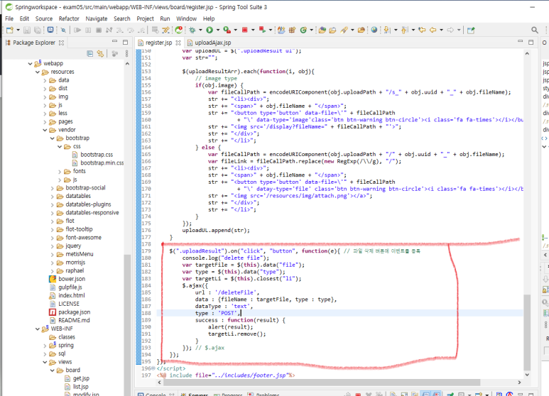 기존의 uploadAjax.jsp 에서 사용했던 코드와 거의 동일합니다.