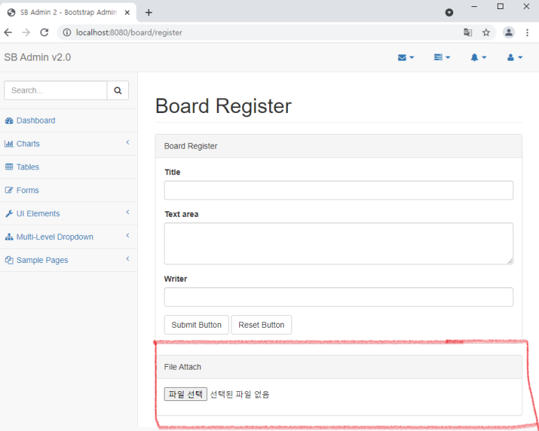 2. register.jsp 에 첨부파일 등록을 위한 HTML 부분을 추가합니다.