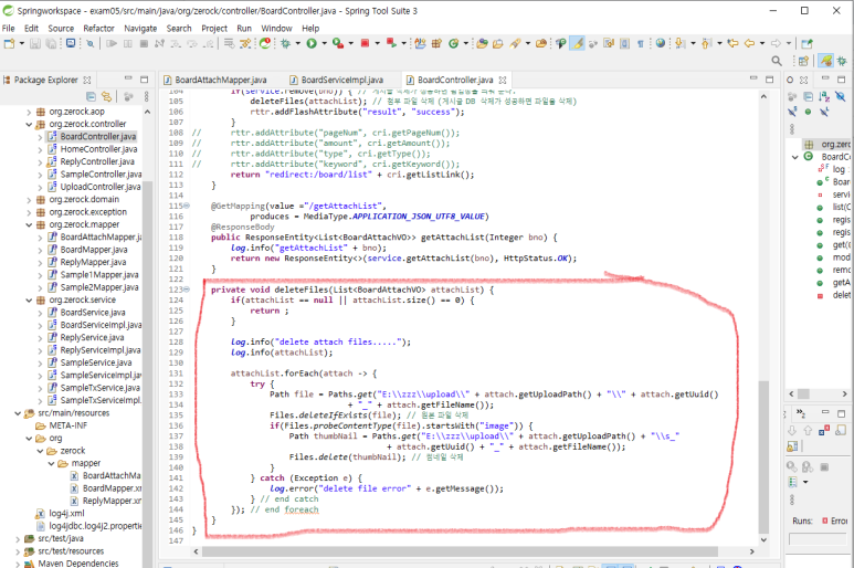 2) deleteFiles() 메소드를 BoardController.java에 구현합니다.
