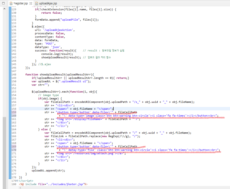 register.jsp javascript showUploadResult() fafa가 아니라 fa fa-times 입니다.