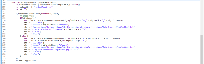 (uploadAjax.jsp 에서 showUploadFile()부분과 변수명만 다를뿐 동일한 방법)