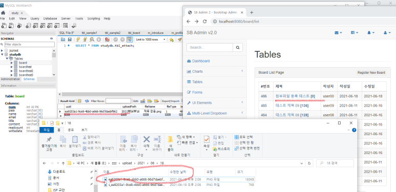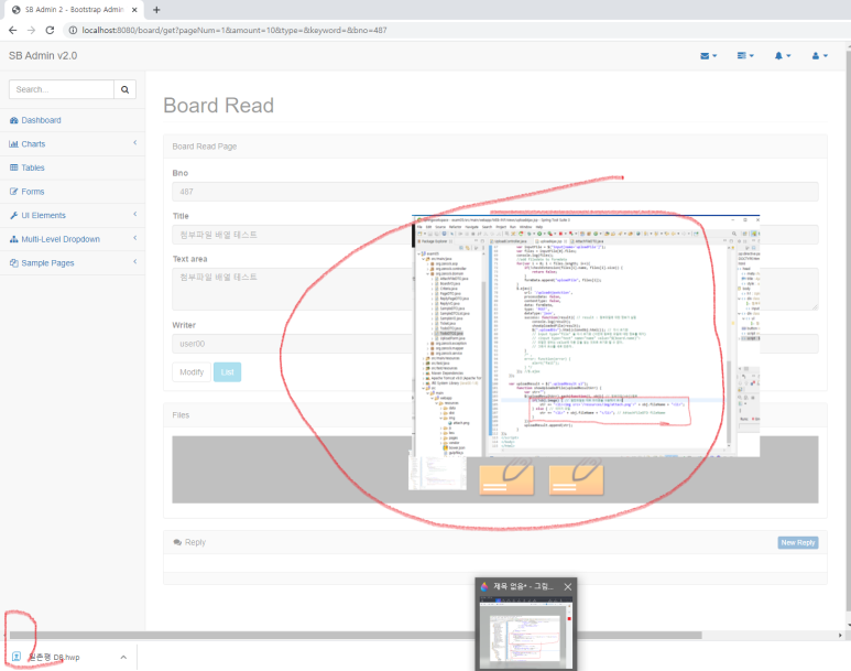 결과를 확인합니다. 이미지 파일은 클릭했을 때 원본이미지를, 첨부파일은 클릭했을 때 다운로드가 됩니다.