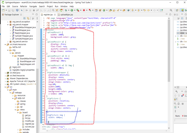 1. src/main/WEB-INF/board/register.jsp 에 css 부분을 추가합니다.(uploadAjax.jsp 의 css 복사)
