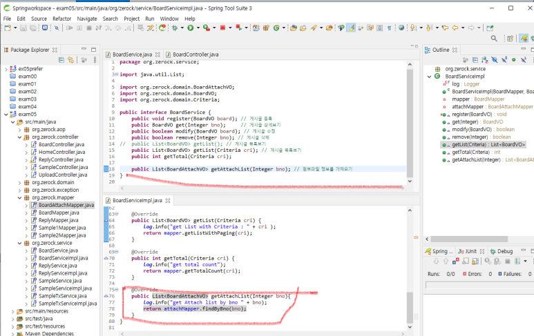 1. BoardService 에 첨부파일정보를 가져오는 메소드를 추가하고